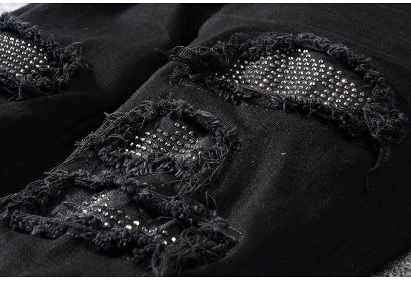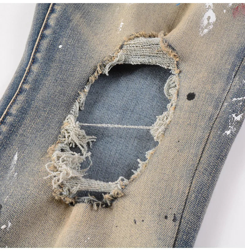 Our slim fit ripped jeans are made from ethically sourced high-quality denim, meticulously crafted by skilled artisans who ensure each pair features unique, hand-finished distressing for exceptional style and comfort.